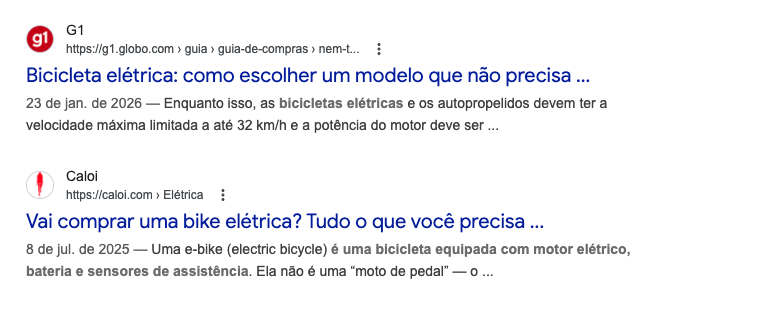 O que aparece no Google quando alguém busca “bicicleta elétrica”