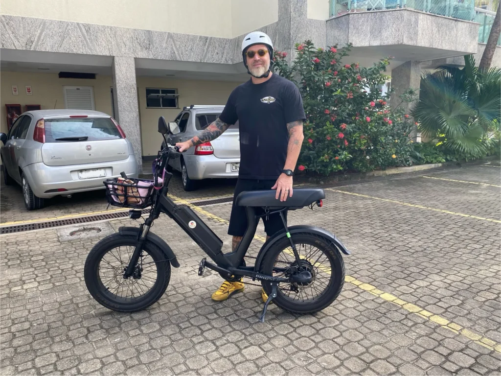 Tenho uma bicicleta elétrica há pouco mais de cinco meses e uso diariamente para ir ao trabalho, “pedalo” cerca de 10 km por dia.