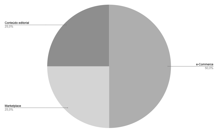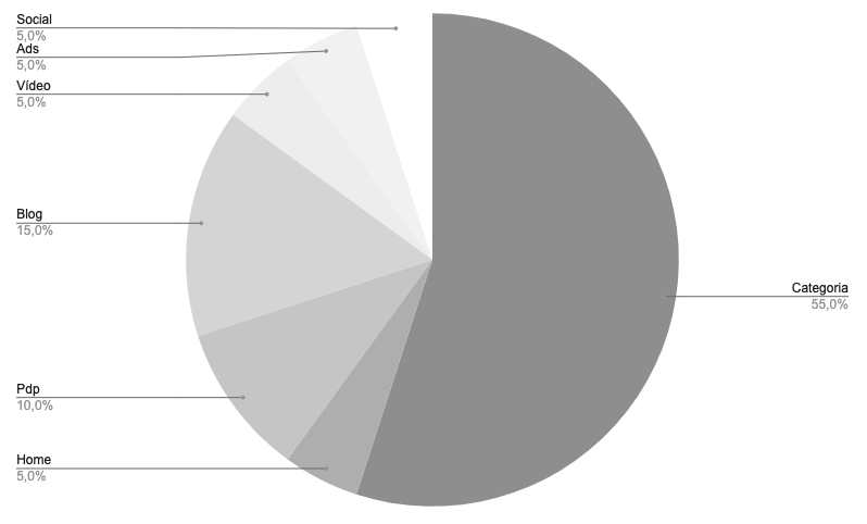 • 50% está com e-commerces, reforçando a força de páginas comerciais próprias.