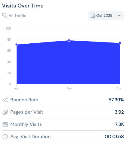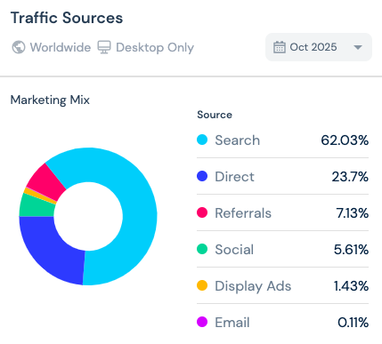 Esse é um velho conhecido dos projetos de SEO. No Similar Web, em seu painel “Website Performance” ele mostra: